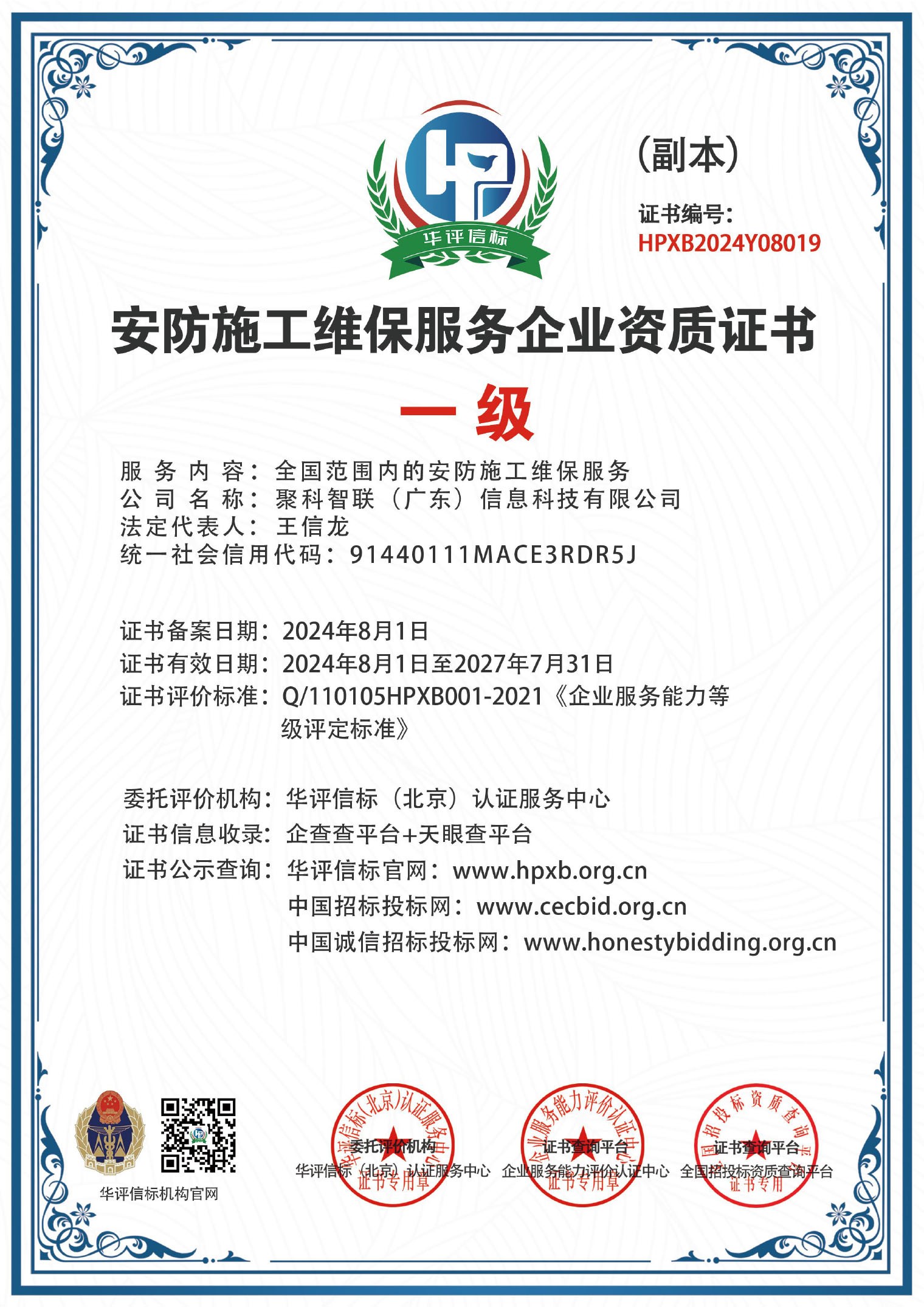 我們擁有證書:電子與智能化工程服務企業資質一級證書、安防施工維保服務企業資質一級證書、智能建筑弱電高級工程師、華為HCIP高級認證ICT工程師證書、特種作業操作證、電工作業證、海康區域認證二級專營店、大華股份認證服務商、品牌商標認證第9類認證,第37類認證、頂級國際域名證書、等一系列權威證書認證。 我們一直以優質的服務和過硬的技術為核心產品一直不斷更新研發至今,致力于打造中小企業優質的互聯網信息化產品設備提供服務商。